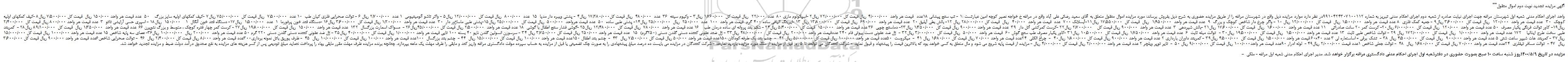 واحد اجرای احکام مدنی شعبه اول شهرستان مراغه جهت اجرای نیابت صادره از شعبه دوم اجرای احکام مدنی تبریز به شماره 9910424307100112در نظر دارد موارد مزایده ذیل واقع در شهرستان مراغه را از طریق مزایده حضوری به شرح ذیل بفروش برساند: مورد مزایده اموال منقول متعلق به آقای سعید رضائی علی آباد واقع در مراغه خ خواجه نصیر کوچه امین عبارتست :1 - تب سنج پیشانی 18عدد قیمت هر واحد 4/000/000 ریال قیمت کل 72/000/000 ریال2 -اسپکولوم مازی 80 عدد 22/000 ریال قیمت کل 1/760/000 ریال3 - وکیوم سینه 36 عدد 480/000 ریال قیمت کل17/280/000 ریال4 - پشتی ویبره دار مدیا 15 عدد 800/000 ریال قیمت کل 12/000/000 ریال5 - واکر تاشو آلومینیومی 1 عدد 2/700/000 ریال 6 - توالت صحرایی فلزی کیان طب 10 عدد 7/500/000 ریال قیمت کل 75/000/000 ریال7 -کیف کمکهای اولیه سایز بزرگ 50 عدد قیمت هر واحد 150/000 ریال قیمت کل 7/500/000 ریال8 -کیف کمکهای اولیه کوچک 30 عدد قیمت هر واحد 120/000 ریال قیمت کل 3/600/000 ریال9 - جعبه کمک فلزی 8 عدد قیمت هر واحد 1/500/000 ریال قیمت کل 12/000/000 ریال 10 - واگر چرخ دار شاخص کوچک و بزرگ 9 عدد قیمت هر واحد 1/950/000 ریال قیمت کل 17/550/000 ریال11-آبسلانک 700 عدد قیمت هر واحد 40/000 ریال قیمت کل 28/000/000 ریال 12- بالش بطی آیلیق 20 عدد قیمت هر واحد 690/000 ریال قیمت کل 13/800/000 ریال 13 -ایربنگ الیافی ساده 400 گرم قیمت هر واحد 100 عدد 250/000 ریال 25/000/000 ریال14- پشتی طبی ساده 50 عدد قیمت هرواحد 500/000 ریال قیمت کل 25/000/000 ریال15-پشتی طبی ماساژور دار 30 عدد قیمت هر واحد 1/200/000 ریال قیمت کل 3/600/000 ریال16 -دستگاه قند خون پرفورما 1 عدد 1/500/000 ریال17- دستگاه قند خون آنگال 1 150/000 ریال18 - اسپری حسی آرایشی تاتو 3 عدد قیمت هر واحد 800/000 ریال قیمت کل 2/400/000 ریال19- کاور توالت فرنگی یکبار مصرف 50 عدد قیمت هر واحد 120/000 ریال قیمت کل 6/000/000 ریال20- کرست کمر 20 سانت صادراتی 11 عدد قیمت هر واحد 1/600/000 ریال قیمت کل 17/600/000 ریال21 -بالش شیردهی 3 عدد قیمت هر واحد 900/000 ریال قیمت کل 2/700/000 ریال22 -کرست کمرکشی آتل دار 39 عدد قیمت هر واحد 900/000 ریال قیمت کل 1/350/000 ریال23- دماسنج چوبی 36 عدد قیمت هر واحد 150/000 قیمت کل 5/400/000 ریال24 - شکم بند پروانه ای ساده درمان طب 16 عدد قیمت هر واحد 780/000 ریال قیمت کل 12/480/000 ریال25 -گوشی فشار سنج اطفال با گوشی 18 عدد قیمت هر واحد 2/500/000 ریال قیمت کل 45/000/000ریال26 - مسواک اسمارت بزرگسال 132 عدد قیمت هر واحد 150/000 ریال قیمت کل 19/800/000 ریال27 - کرست کمر چهار فنره کوچک ، متوسط و بزرگ نئوپرن 66 عدد قیمت هر واحد 1/350/000 ریال قیمت کل 89/100/000 ریال28 - کمربند طبی سخت طرح ایتالیا 172 عدد قیمت هر واحد 1/000/000 ریال قیمت کل 172/000/000 ریال 29 - توالت شاخص طبی ثابت 13 عدد قیمت هر واحد 1/500/000 ریال قیمت کل 19/500/000 ریال30 - توالت مبله ثابت 6 عدد قیمت هر واحد 1/750/000 ریال قیمت کل 10/500/000 ریال31 -کاور یکبار مصرف طب سنج گوش 60 قیمت هر واحد 50/000 ریال قیمت کل 3/000/000 ریال32 - ژل ضد عفونی دست بیوتی فام 240 عددقیمت هر واحد 200/000 ریال قیمت کل 48/000/000 ریال33 - ژل ضند عفونی کننده دستی گلدن دستی (250گرم) 15 عدد قیمت هر واحد 250/000 ریال قیمت کل 3/750/000 ریال 34 - سرسوزن انسولین گلدن نایو 40 بسته 100 تایی قیمت هر واحد 1/000/000 ریال قیمت کل 40/000/000 ریال35 - ژل ضد عفونی کننده دستی گلدن دستی 220 گرم 50 عدد قیمت هر واحد 200/000 ریال 10/000/000 ریال36- عصای سه پایه شاخص 15 عدد قیمت هر واحد 1000/000 ریال قیمت کل 15/000/000 ریال37 - کمربند هات شیپر ساعت شنی 5 عدد قیمت هر واحد 900/000 ریال قیمت کل 4/500/000 ریال 38 - تشک برقی + اساستعاره لی 3 عدد 40×60 قیمت هر واحد 1/500/000 ریال قیمت کل 4/500/000 ریال39 - کمربند داوران بارداری 2 عدد قیمت هر واحد 900/000 ریال قیمت کل 1/800/000 ریال40 - چراغ الکلی 24عدد قیمت هر واحد 70/000 ریال قیمت کل 1/680/000 ریال 41 - میکروست 50عدد قیمت هر واحد 100/000 ریال قیمت کل 5/000/000 ریال 42 - چشم بند یک طرفه کودکان 150عدد قیمت هر واحد 50/000 ریال قیمت کل 7/500/000 ریال 43 - چشم بند اطفال 150عدد قیمت هر واحد 100/000 ریال قیمت کل 15/000/000 ریال 44 - چشم بند بزرگسال 100عدد قیمت هر واحد 100/000 ریال قیمت کل 10/000/000 ریال 45 - ظرف یوریق باتل نمونه برداری300عدد قیمت هر واحد 8/000 ریال قیمت کل 2/400/000 ریال 4