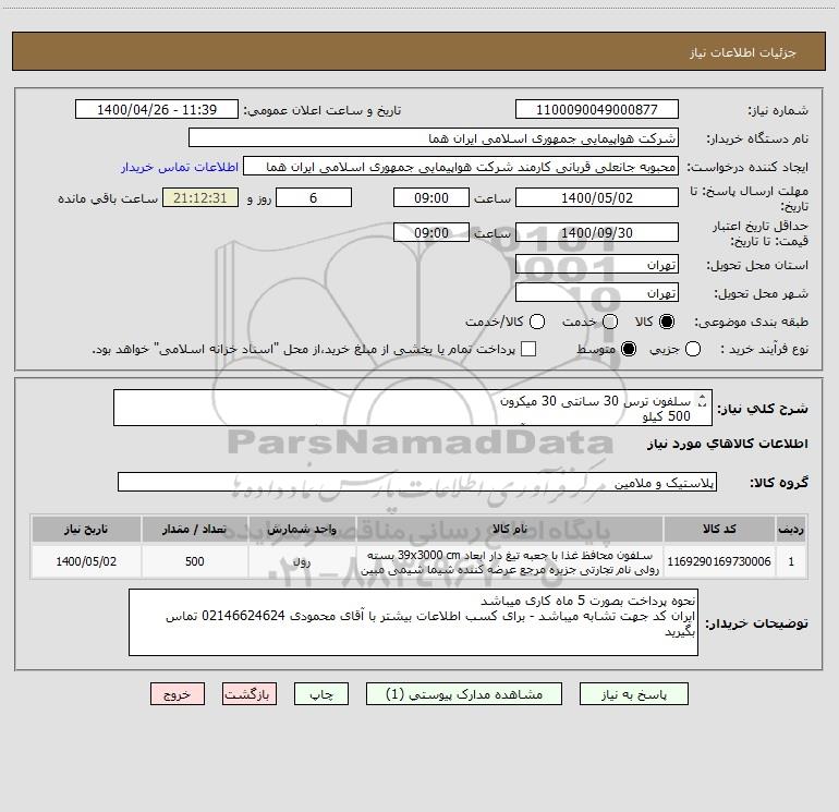 نام دستگاه خریدار:شرکت هواپیمایی جمهوری اسلامی ایران هما