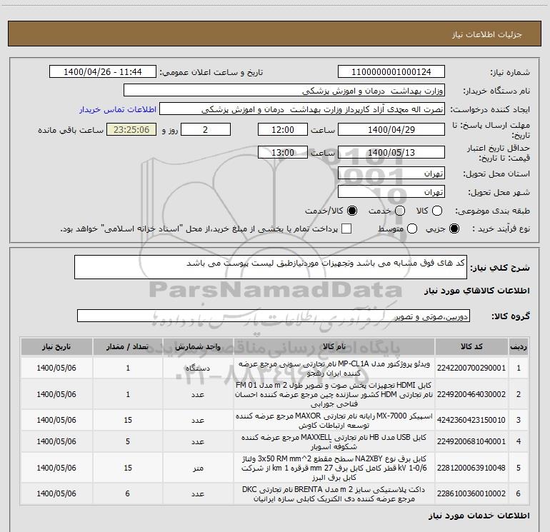 شرح کلی نیاز: کد های فوق مشابه می باشد وتجهیزات موردنیازطبق لیست پیوست می باشد