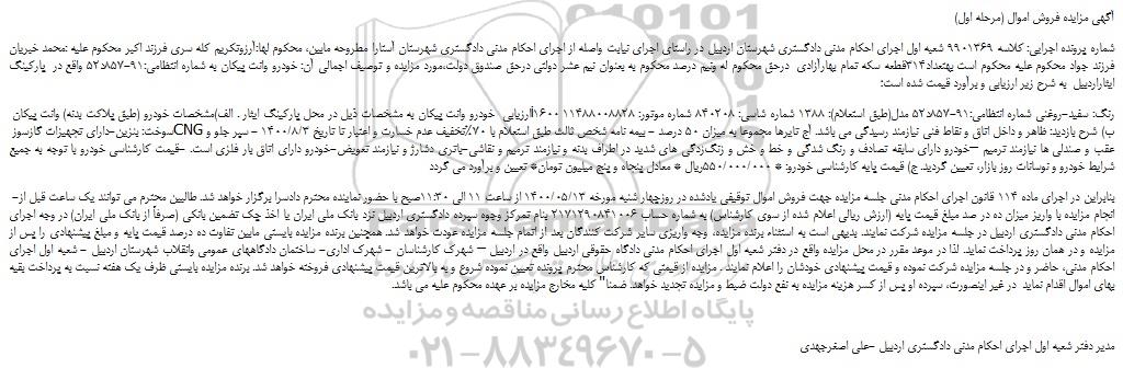 شعبه صادر کننده:شعبه اول اجرای احکام مدنی دادگستری شهرستان اردبیل/قدیم