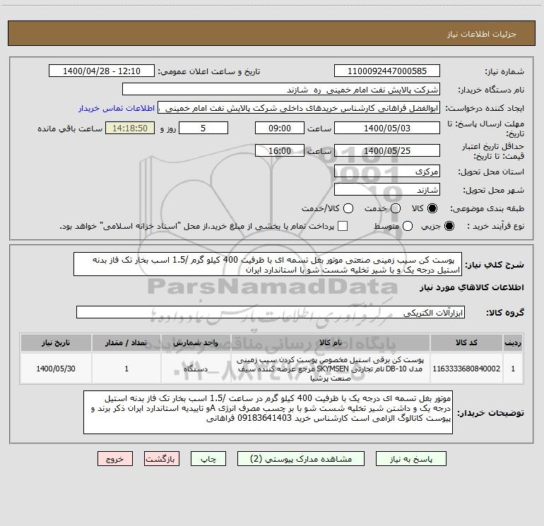 نام دستگاه خریدار:شرکت پالایش نفت امام خمینی ره شازند