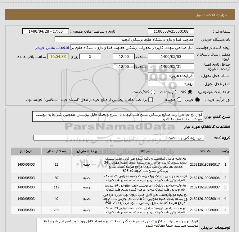 نام دستگاه خریدار:معاونت غذا و دارو دانشگاه علوم پزشکی ارومیه