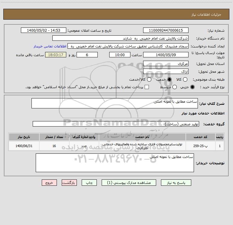 شرح کلی نیاز: ساخت مطابق با نمونه اصلی