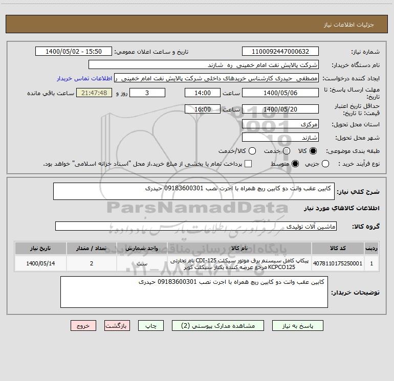شرح کلی نیاز: کابین عقب وانت دو کابین ریچ همراه با اجرت نصب 09183600301 حیدری