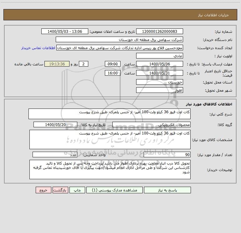 نام دستگاه خریدار:شرکت سهامی برق منطقه ای خوزستان
