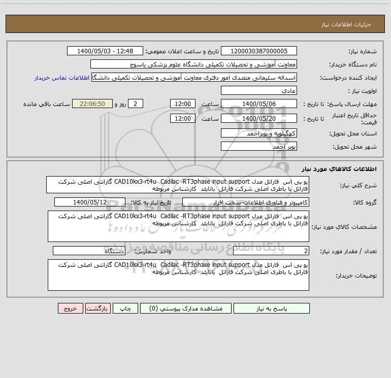 نام دستگاه خریدار:معاونت آموزشی و تحصیلات تکمیلی دانشگاه علوم پزشکی یاسوج