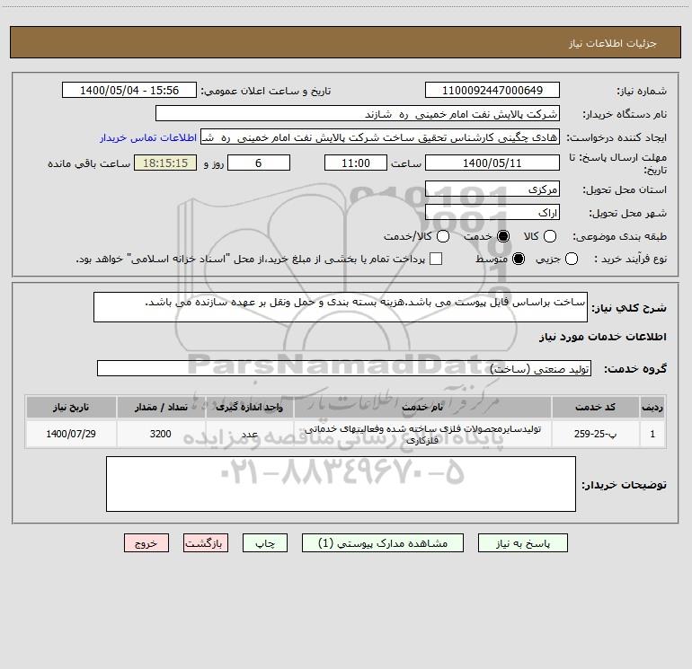 شرح کلی نیاز: ساخت براساس فایل پیوست می باشد.هزینه بسته بندی و حمل ونقل بر عهده سازنده می باشد.