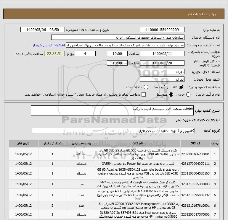 شرح کلی نیاز: قطعات سخت افزار سیستم ادیت دایرکت
