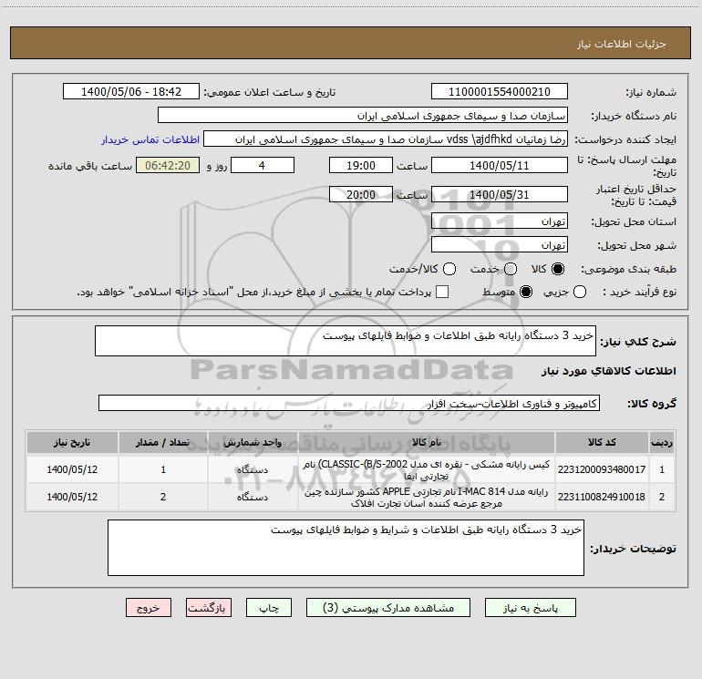 شرح کلی نیاز: خرید 3 دستگاه رایانه طبق اطلاعات و ضوابط فایلهای پیوست