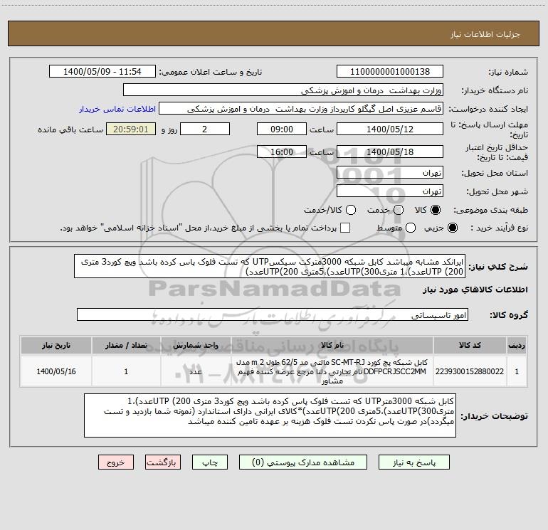 نام دستگاه خریدار:وزارت بهداشت درمان و اموزش پزشکی