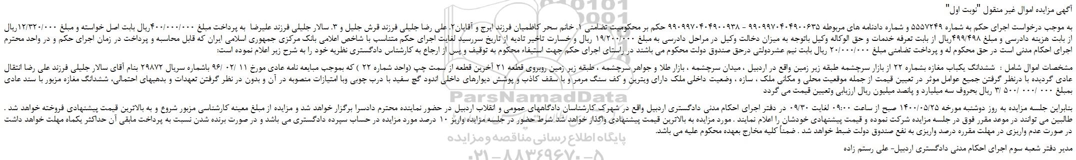 "آگهی مزایده اموال غیر منقول "نوبت اول