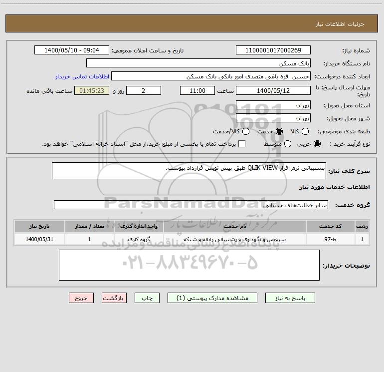 شرح کلی نیاز: پشتیبانی نرم افزار QLIK VIEW طبق پیش نویس قرارداد پیوست.