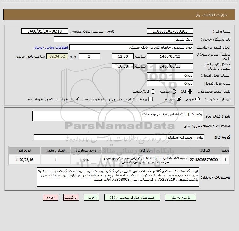 استعلام پکیج کامل آتشنشانی مطابق توضیحات, استعلام پکیج کامل آتشنشانی مطابق توضیحات