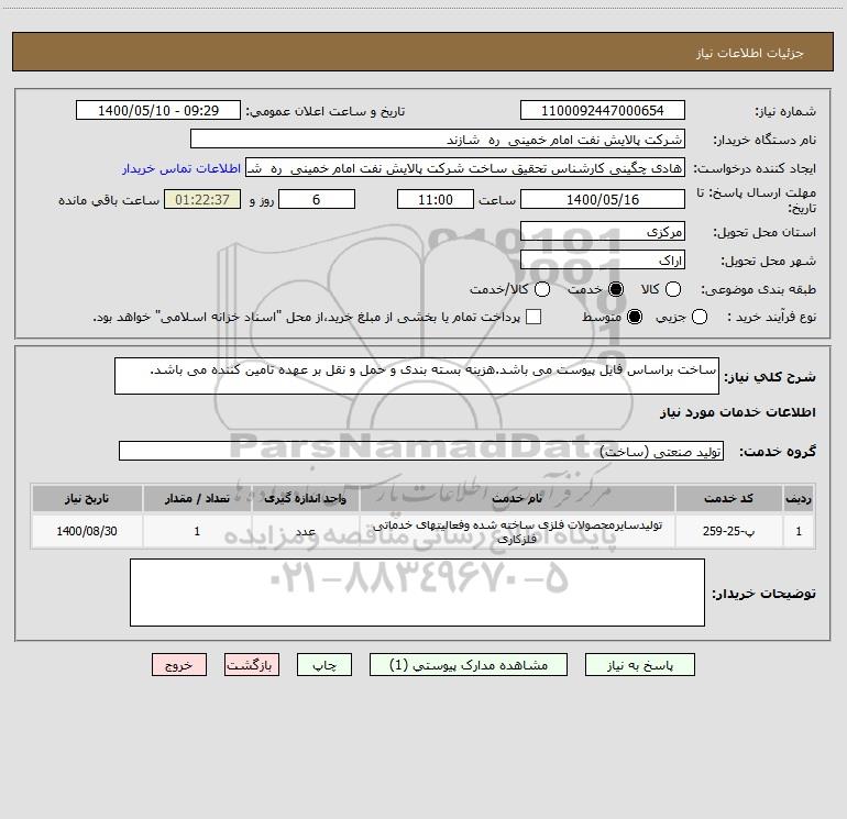شرح کلی نیاز: ساخت براساس فایل پیوست می باشد.هزینه بسته بندی و حمل و نقل بر عهده تامین کننده می باشد.