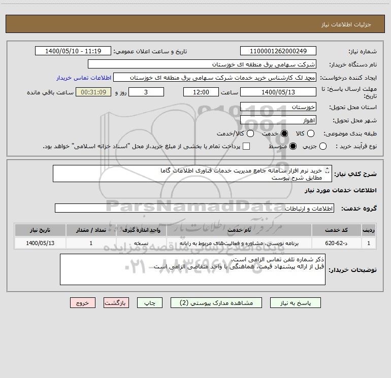 نام دستگاه خریدار:شرکت سهامی برق منطقه ای خوزستان