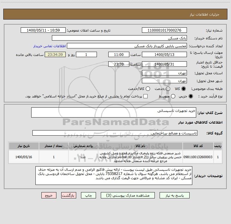 شرح کلی نیاز: خرید تجهیزات تاسیساتی