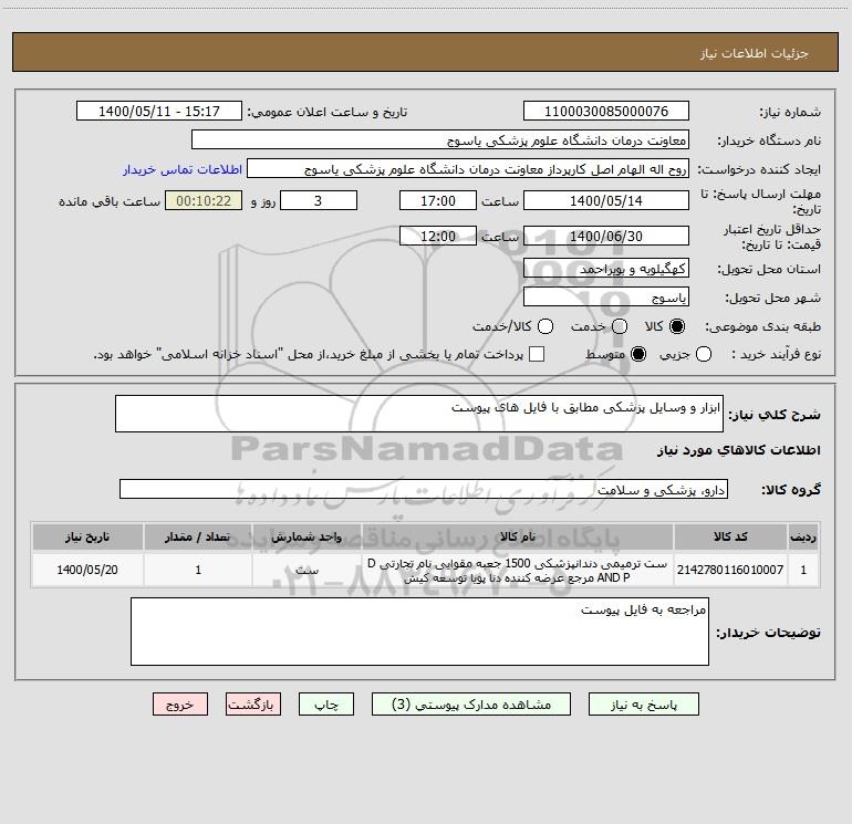 نام دستگاه خریدار:معاونت درمان دانشگاه علوم پزشکی یاسوج