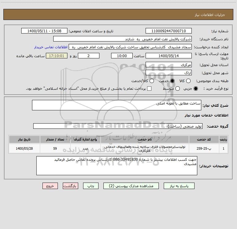 شرح کلی نیاز: ساخت مطابق با نمونه اصلی