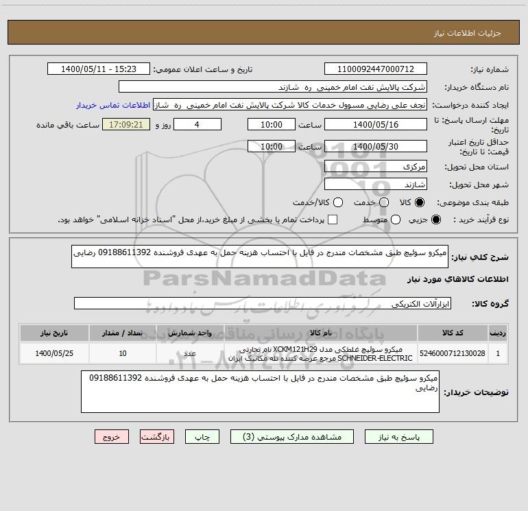 شرح کلی نیاز: میکرو سوئیچ طبق مشخصات مندرج در فایل با احتساب هزینه حمل به عهدی فروشنده 09188611392 رضایی