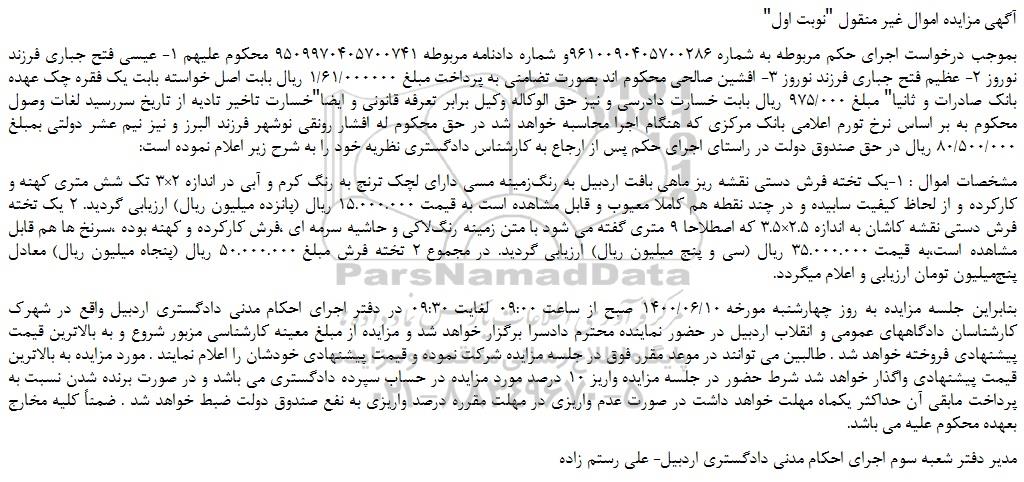 "آگهی مزایده اموال غیر منقول "نوبت اول