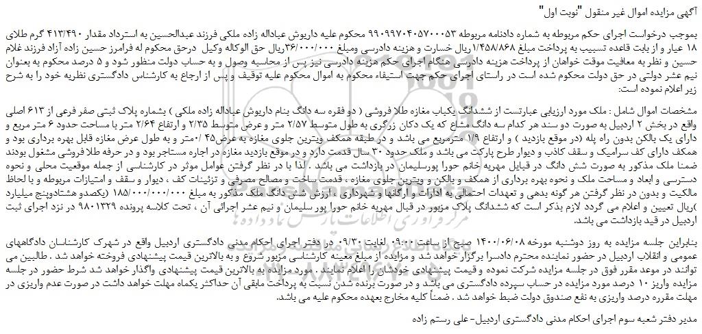 "آگهی مزایده اموال غیر منقول "نوبت اول