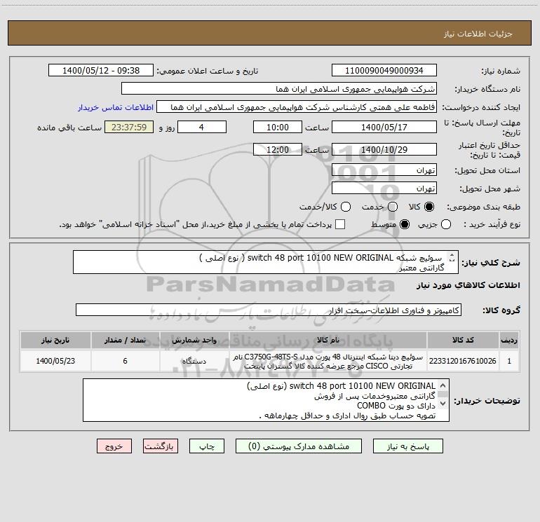شرح کلی نیاز: سوئیچ شبکه switch 48 port 10100 NEW ORIGINAL ( نوع اصلی )