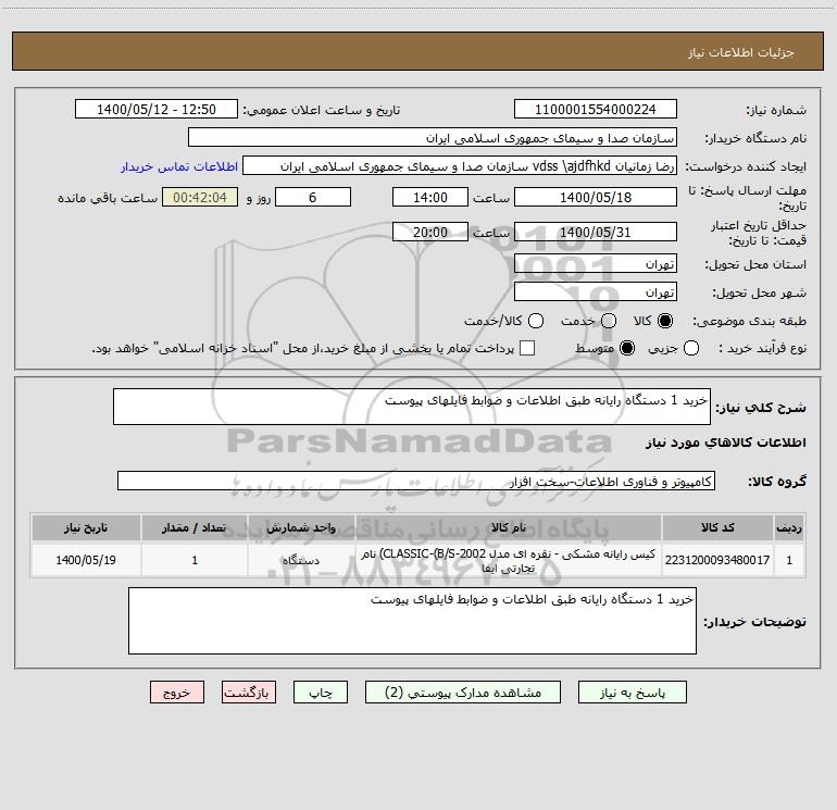 نام دستگاه خریدار:سازمان صدا و سیمای جمهوری اسلامی ایران