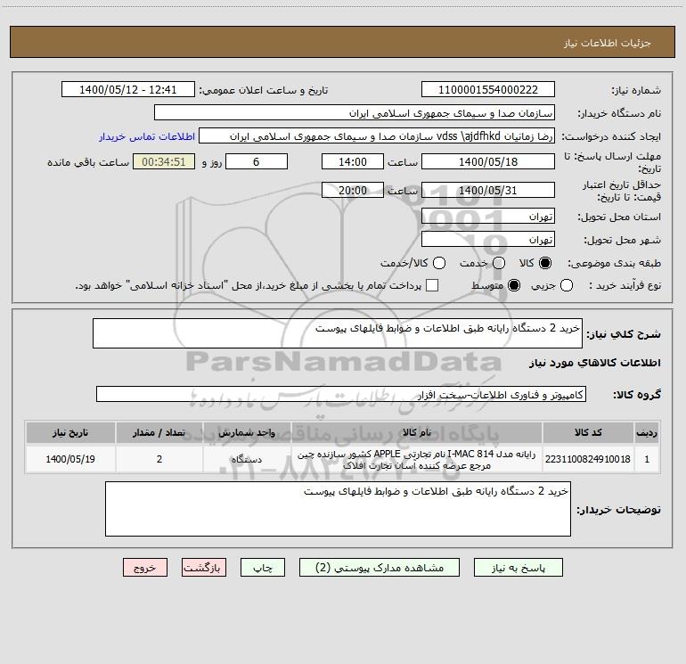 نام دستگاه خریدار:سازمان صدا و سیمای جمهوری اسلامی ایران