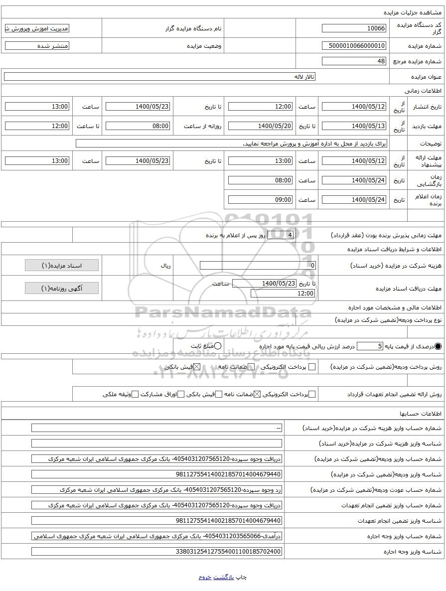 عنوان مزایدهتالار لاله