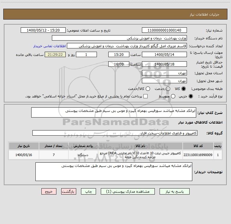 نام دستگاه خریدار:وزارت بهداشت درمان و اموزش پزشکی