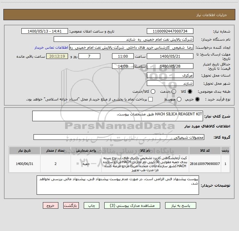 استعلام HACH SILICA REAGENT KIT طبق مشخصات پیوست., استعلام HACH SILICA REAGENT KIT طبق مشخصات پیوست.