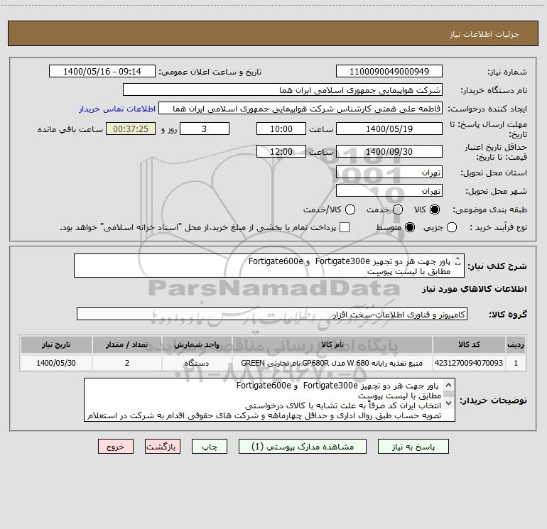 استعلام پاور جهت هر دو تجهیز Fortigate300e و Fortigate600e مطابق با لیست پیوست انتخاب ایران کد صرفاً به علت تشابه با کالای درخواستی , استعلام پاور جهت هر دو تجهیز Fortigate300e و Fortigate600e مطابق با لیست پیوست انتخاب ایران کد صرفاً به علت تشابه با کالای درخواستی