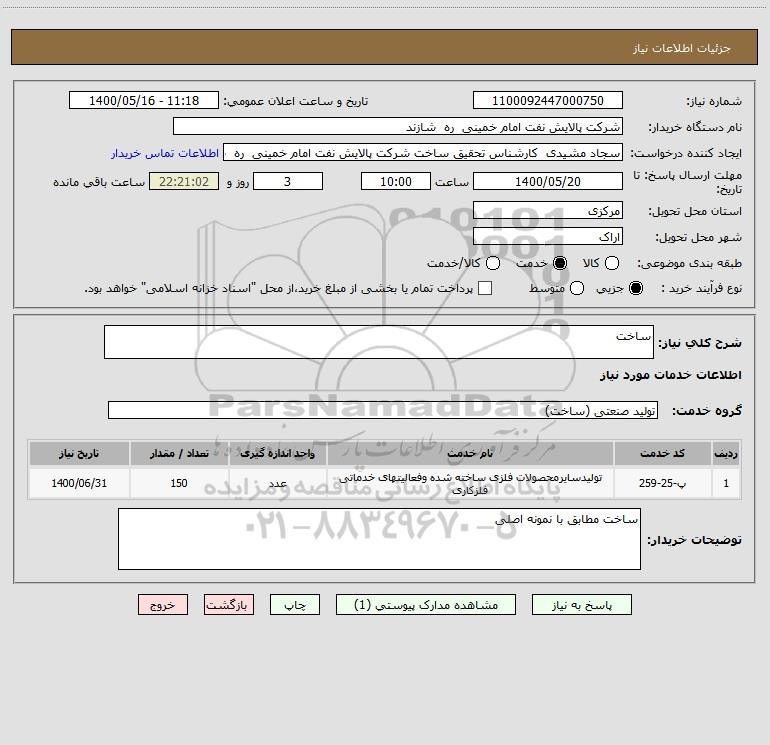 نام دستگاه خریدار:شرکت پالایش نفت امام خمینی ره شازند