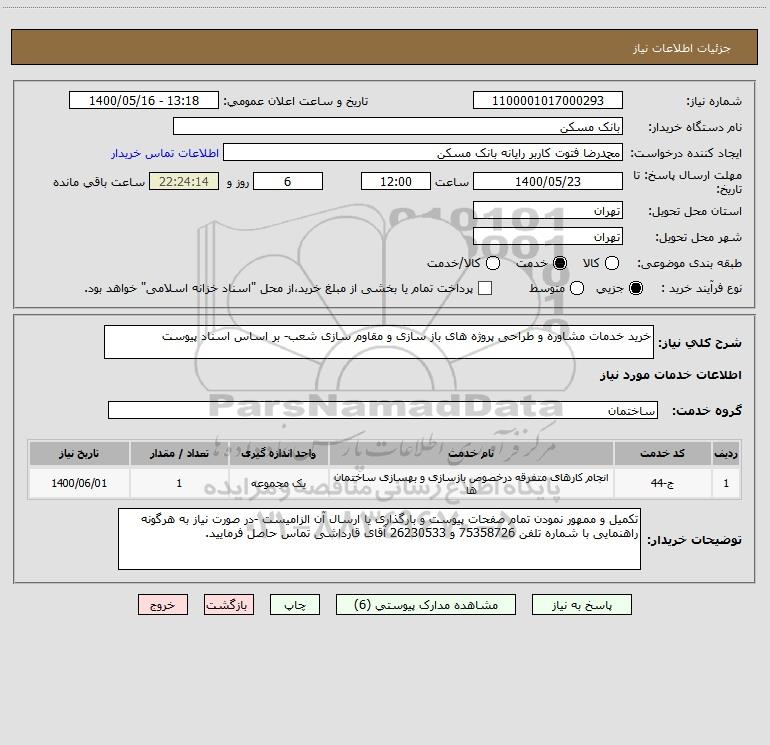 شرح کلی نیاز: خرید خدمات مشاوره و طراحی پروژه های باز سازی و مقاوم سازی شعب- بر اساس اسناد پیوست