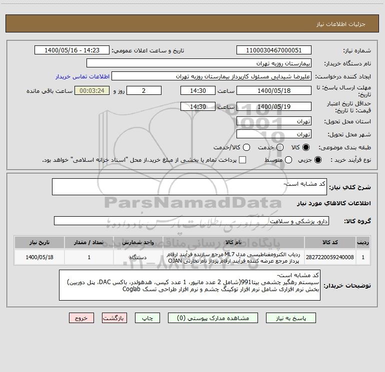 نام دستگاه خریدار:بیمارستان روزبه تهران