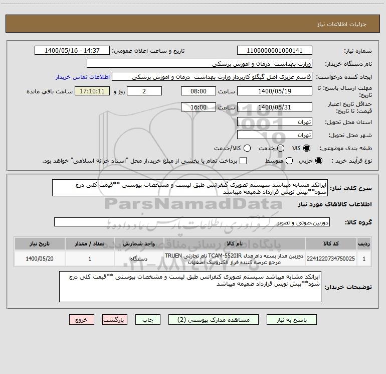 شرح کلی نیاز: ایرانکد مشابه میباشد سیستم تصویری کنفرانس طبق لیست و مشخصات پیوستی **قیمت کلی درج شود**پیش نویس قرارداد ضمیمه میباشد
