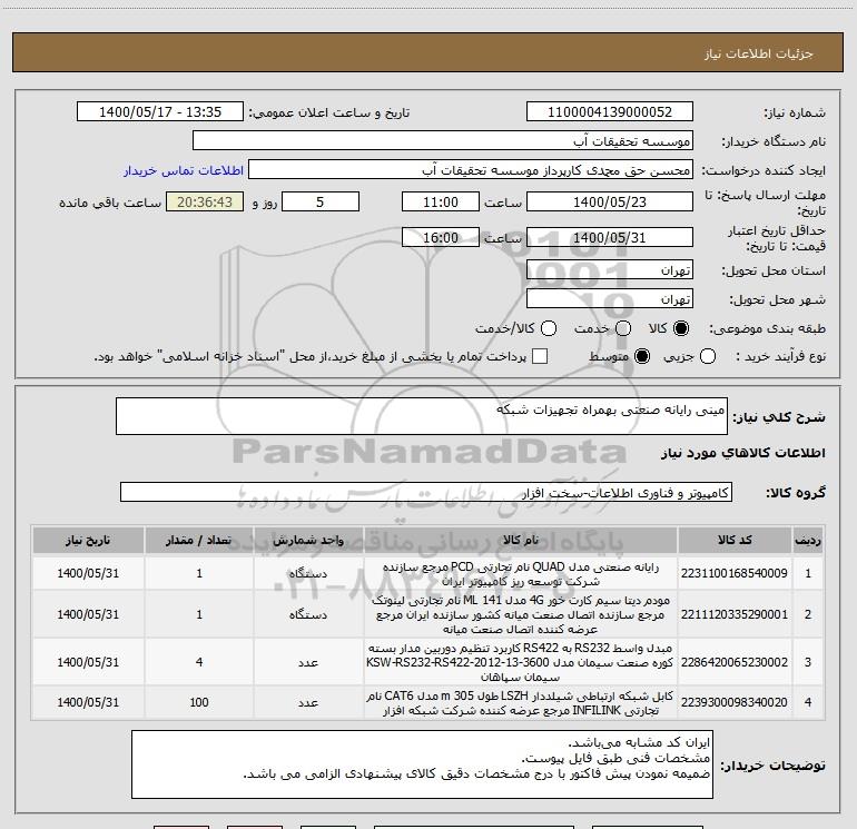 شرح کلی نیاز: مینی رایانه صنعتی بهمراه تجهیزات شبکه