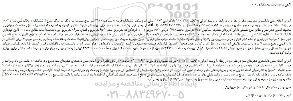«آگهی مزایده نوبت دوم تکراری »