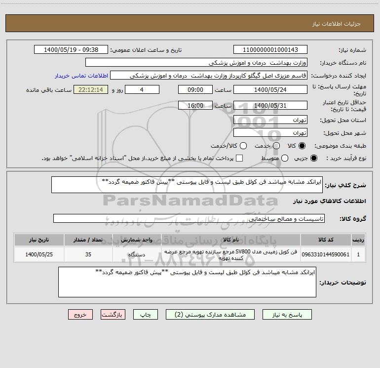 شرح کلی نیاز: ایرانکد مشابه میباشد فن کوئل طبق لیست و فایل پیوستی **پیش فاکتور ضمیمه گردد**