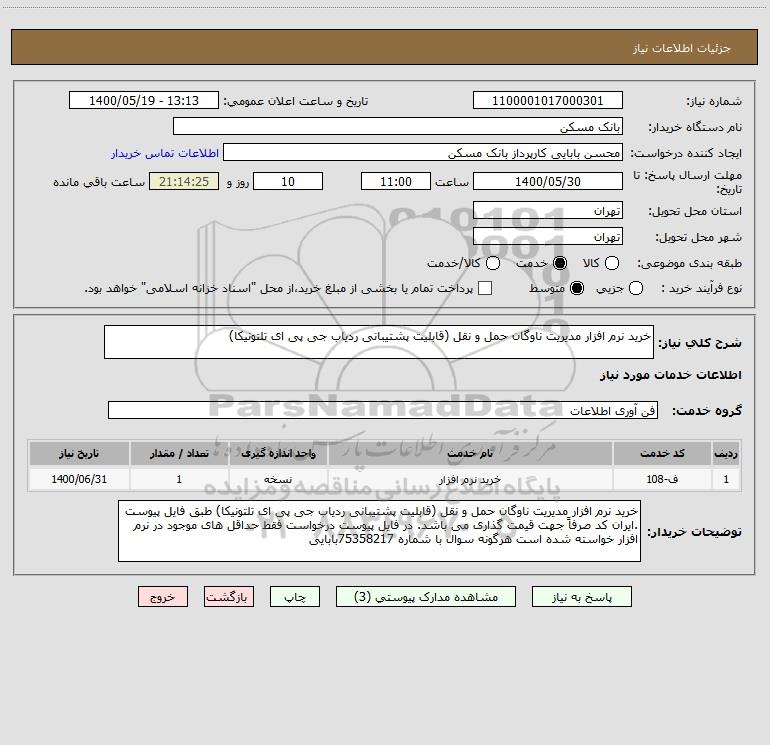شرح کلی نیاز: خرید نرم افزار مدیریت ناوگان حمل و نقل (قابلیت پشتیبانی ردیاب جی پی ای تلتونیکا)