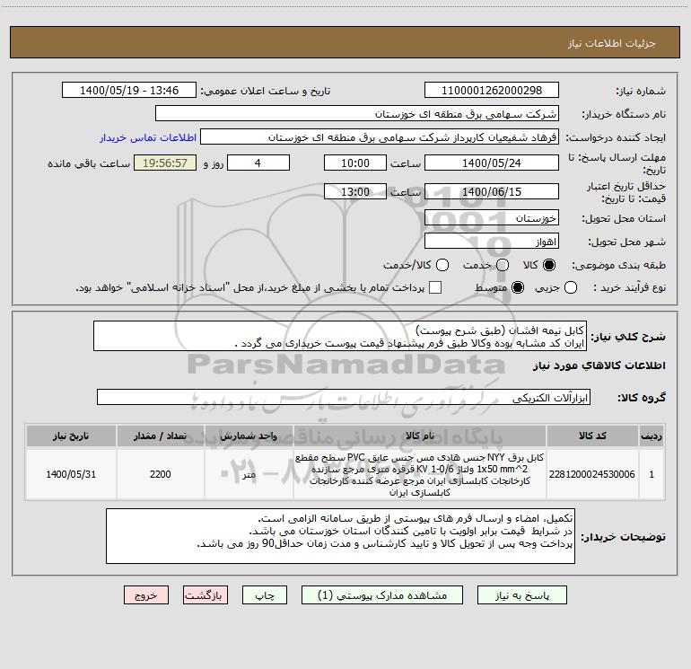 شرح کلی نیاز: کابل نیمه افشان (طبق شرح پیوست)