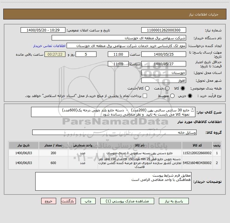 نام دستگاه خریدار:شرکت سهامی برق منطقه ای خوزستان
