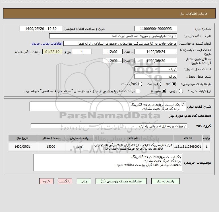 نام دستگاه خریدار:شرکت هواپیمایی جمهوری اسلامی ایران هما