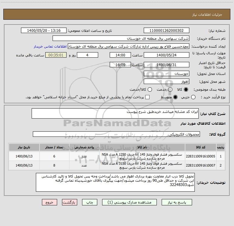 نام دستگاه خریدار:شرکت سهامی برق منطقه ای خوزستان