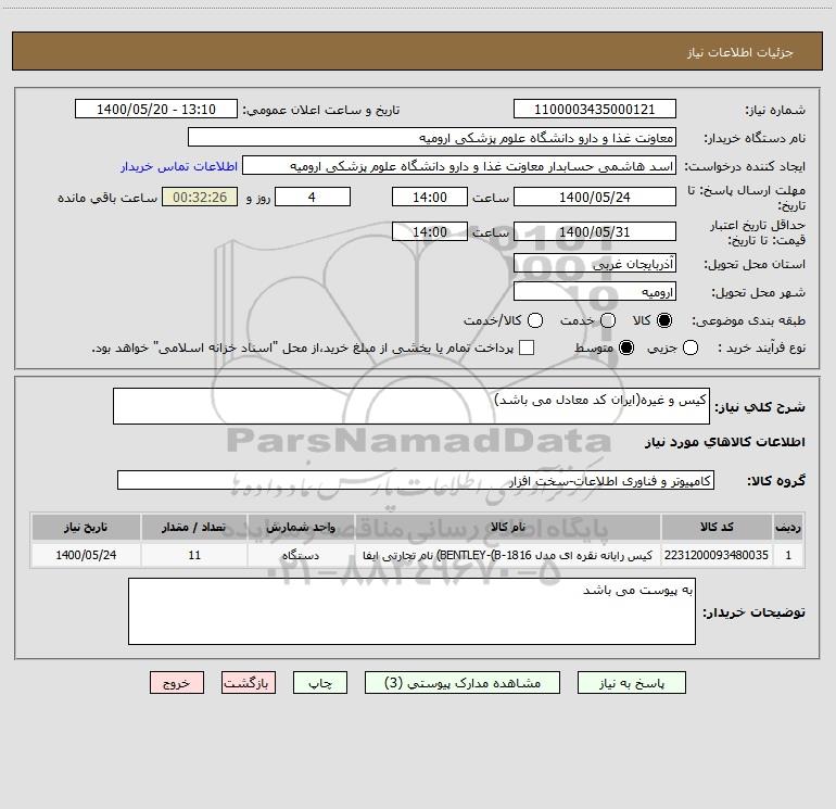 شرح کلی نیاز: کیس و غیره(ایران کد معادل می باشد)