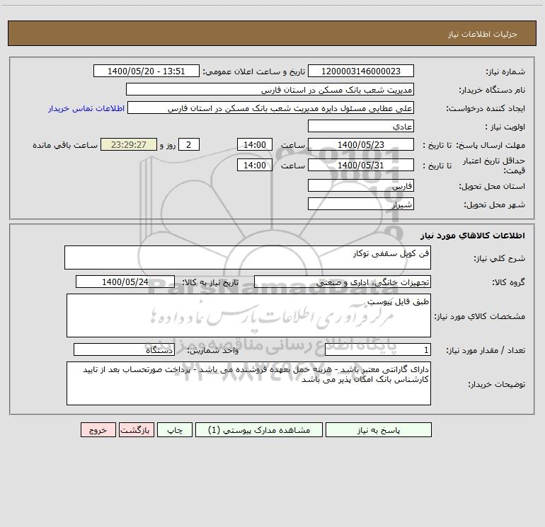 نام دستگاه خریدار:مدیریت شعب بانک مسکن در استان فارس