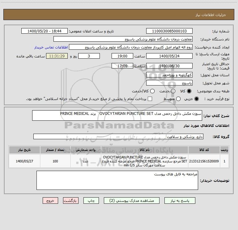 نام دستگاه خریدار:معاونت درمان دانشگاه علوم پزشکی یاسوج