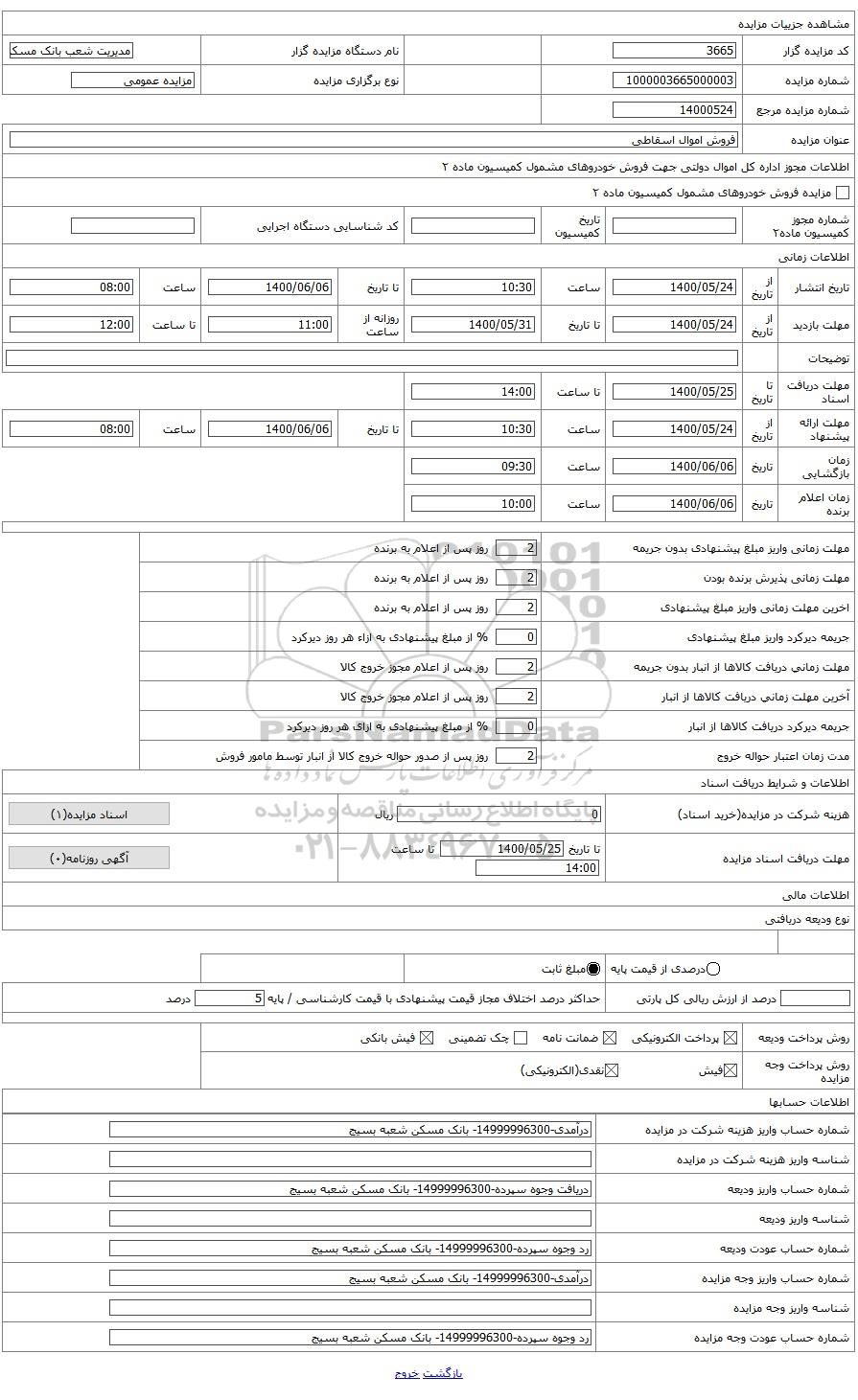 کد مزایده گزار3665نام دستگاه مزایده گزارمدیریت شعب بانک مسکن در استان اردبیل