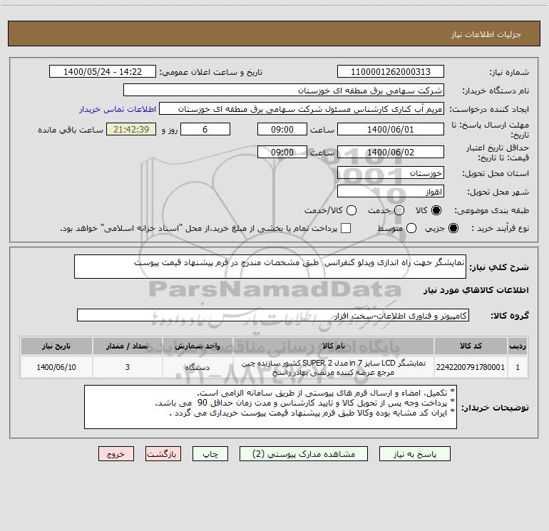 نام دستگاه خریدار:شرکت سهامی برق منطقه ای خوزستان