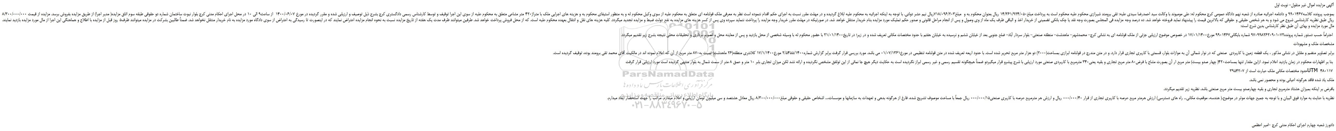 تمام آگهی ها طبق نمونه تصویر آگهی صرفا جهت اطلاع رسانی می باشد در خصوص استفاده از این آگهی هر گونه مسئولیت پرداخت به آگهی دهنده و بررسی و احراز هویت به عهده شرکت کنندگان می باشد و پایگاه خبری پارس نماد هیچگونه منفعت و مسئولیتی بابت تعهد این آگهی ندارد.